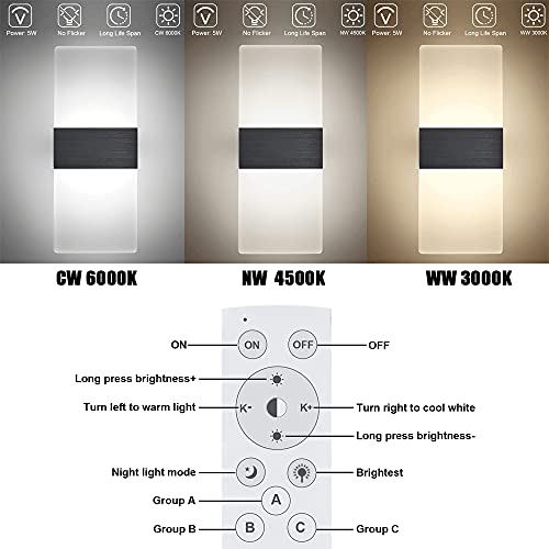 Luxvista 5W LED Applique da Parete per Interni, Moderna Lampada da Parete in Acrilico con Telecomando, 3 Modalità di Luce Regolabili, illuminazione per Interna della Camera da Letto, Nero