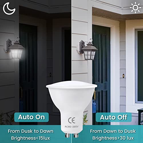 Luxvista GU10 Lampadine con Sensore Cepuscolare, 5W Bianco freddo 6000K Accensione/spegnimento automatico equivalenti a lampadine alogene 40-50W, per giardino, corridoio, garage