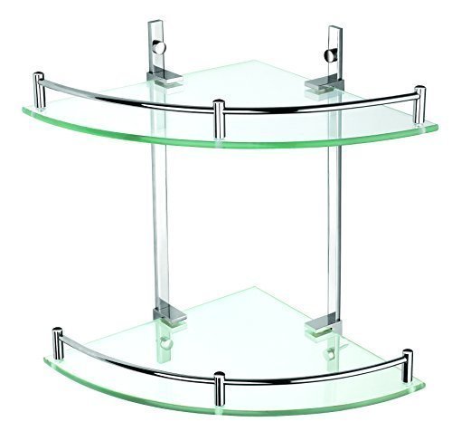 Luxxur ™ S023 Superior - Scaffale angolare a 2 ripiani per bagno, in vetro, con supporti cromati su ottone, totalmente antiruggine