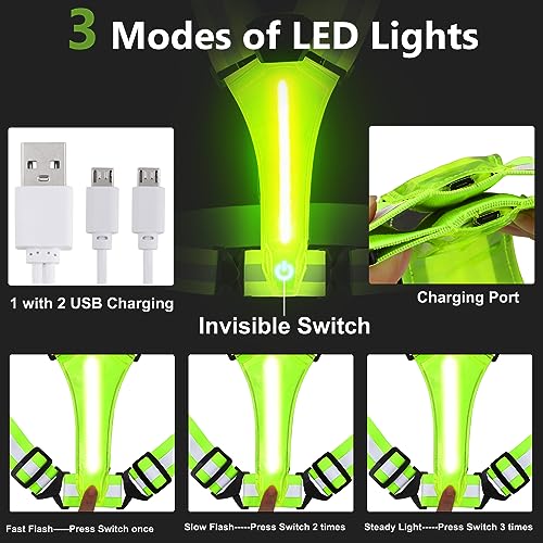 LUZOON 1 Pezzi Gilet Riflettente di Sicurezza + 2 Pezzi Braccialetti di Sicurezza, Gilet di Sicurezza Riflettente Regolabile di Sicurezza Gilet Fluorescente Unisex per Corsa, Ciclismo, Motociclismo