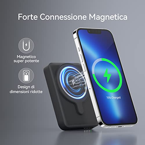 LVFAN 10000 mAh Power Bank Magnetico, 15W Wireless Caricabatterie Portatile e USB-C PD 22W Ricarica Rapida Con Mag-Safe Per iPhone Serie 14/13/12 (Nero)