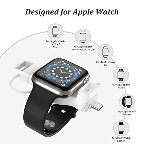 LVFAN Caricatore Wireless per Apple Watch, 2-1 USB-A e USB-C Caricabatterie Portatileper iWatch, Caricabatterie Magnetico a Ricarica Rapida per Apple Watch Series 8/7/6/5/4/3/2/1/SE/Ultra (Bianco)