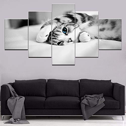 LVGUMM Quadri Stampa su Tela 150x80 CM 5 Pezzi Gatto Grigio Animale HD Poster Sfondi Moderno Modulare Art Pittura A Immagini di Stampe su Tela Soggiorno Camera Letto Decorazione della Casa