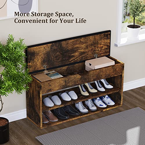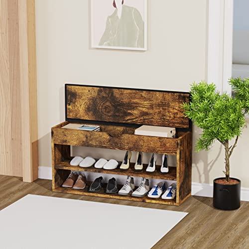 Lvhcmfohm Scarpiera Panca, Portascarpe con Cuscino 80x30x44cm, Scarpiera per Ingresso può Contenere Fino a 300 Libbre (Nero + Marrone Vintage)