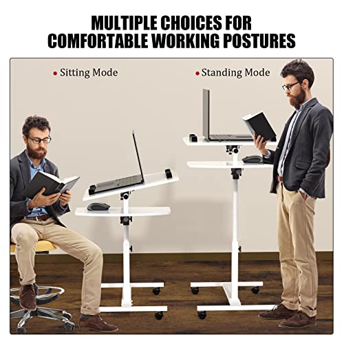 Lvhcmfohm Scrivania con Ruote, Pieghevole Tavolino da Letto per PC, Rotazione Portatile Tavolino per Laptop, Regolabile in Altezza, Adatto per Ufficio, Camera da Letto, Divano (Bianca, 40x40+20x40cm)