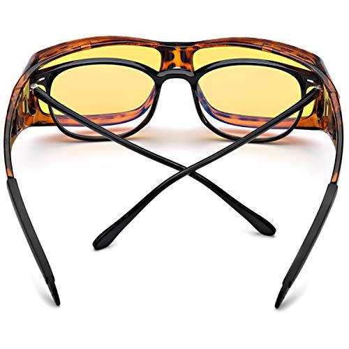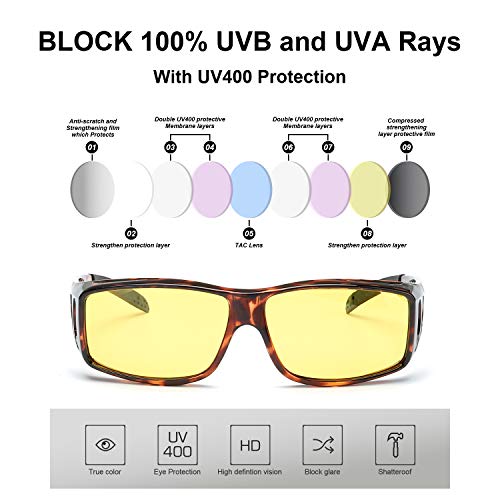LVIOE Occhiali da Sole Notturni Guida Sopra Occhiali da Vista Polarizzati Antiriflesso Grandi - Protezione UVA & UVB (Tartaruga/giallo)
