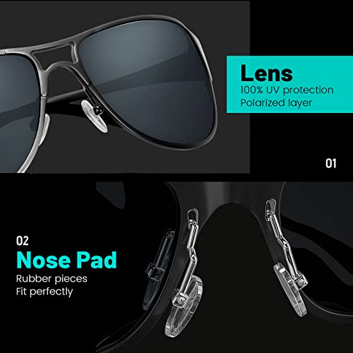 LVIOE Uomo Occhiali Da Sole Polarizzate Ultraleggero Cornice Metallica con il Caso - Protezione UVA & UVB (Nero/Grigio)