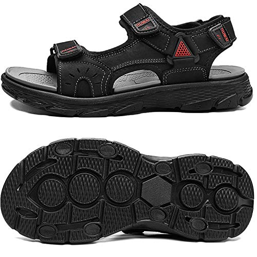 Lvptsh Sandali Sportivi Uomo Sandali de Passeggio Estivi All'aperto Escursionismo Trekking Sandals Pelle Casual Traspirante Spiaggia Sandaletti,Nero 1,EU40