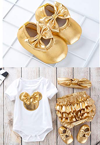 LvRao 4pcs Completi Abbigliamento per Bambina Body Pagliaccetto Manica Corta abbinando con Mutandine con Volant Scarpe Fascia - Bianco Oro, 59 (0-3M)