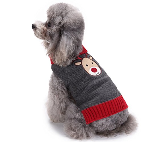 LvRao Cane Gatto Collo Alto Maglione Natale Renna Animale Domestico Costume Maglieria Pullover (Grigio, XXL)