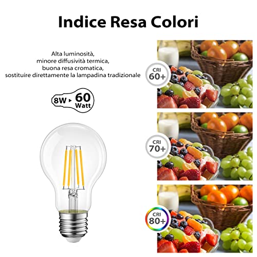 ➤ Lampadine a LED con filamenti, modello standard A60 con attacco E27. La superficie trasparente che mostra i filamenti a LED gli conferisce uno stile vintage retrò ideale per tutti i tipi di ambienti.