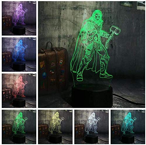 LVYONG Luce Notturna 3D Di Super Hero Thor,Lampada Da Illusione Con Telecomando E Smart Toccare,16 Cambi Di Colore,Carica Tramite Cavo Usb,Regali Per Bambini.