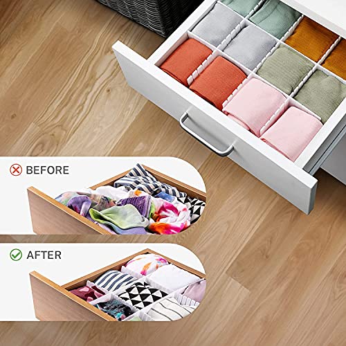 DIMENSIONE: Il set contiene 16 divisori cassetti, ciascuno 32,4 x 7 cm, con Accessori fissi, Collegamento accessori, Pulsante triangolo, fibbia a croce. il divisorio è flessibile e regolabile, il che non solo ti fa risparmiare tempo e spazio per trovare gli oggetti, ma mantiene anche in ordine il cassetto