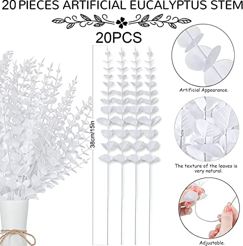 LWAIX Eucalipto Artificiali Foglie di Eucalipto Artificiale 20pcs Steli di EucaliptoEucalipto Artificiali per Festa di Nozze Giardino (Bianco, 20)