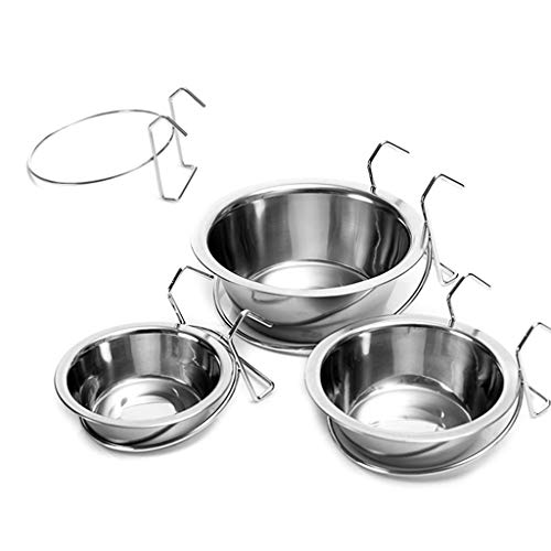 Lwl220 - Ciotola da appendere in acciaio INOX per cani, gatti, uccelli, pappagalli, cibo e acqua medium Silver