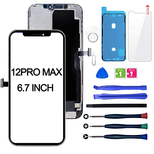 LWMTT Display LCD Compatibile con 12 PRO Max (6,7 Pollici Nero) Schermo digitalizzatore A2342, A2410, A2412, A2411 con Strumenti di Riparazione Completi + Adesivo Adesivo