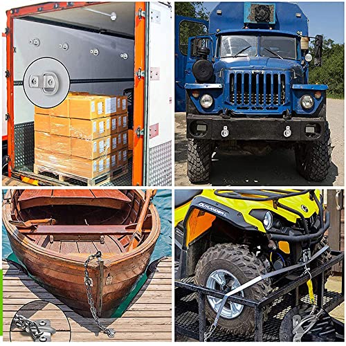 【Ampiamente Usato】: Gli anelli di fissaggio sono versatili, montabili su superficie e forniscono un comodo punto di ancoraggio per cinghie di carico, corde o cavi e corde elastiche. Comunemente utilizzato in camion, pickup, kayak, fuoristrada, camper, motocicli, camion e ancore su barche e rimorchi.