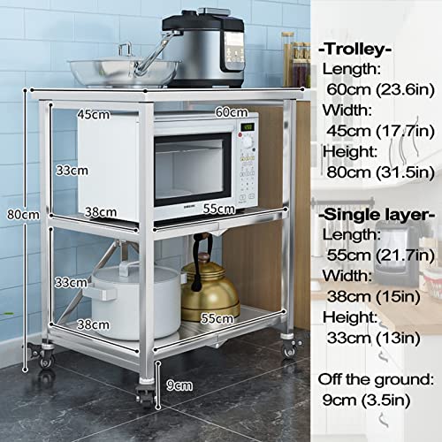 LXSEHN Carrello da Cucina, Mobiletto Carrelli da Portata 3 Ripiani Scaffale Microonde Metallo, 60x45x80cm Ripiegabile Scaffalatura Portaoggetti Servizio su Ruote per Ristorante Ufficio, Argento