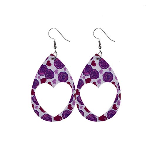 LXYU Orecchini in Pelle Sintetica Leggera Orecchini Pendenti A Goccia Fatti A Mano Orecchini in Pelle con Paillettes di San Valentino Orecchini in Pelle con Stampa Sfusa A Cuore Vuoto A Strati