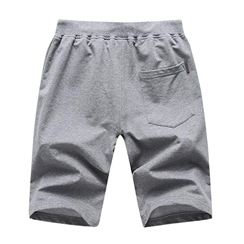 LY4U Pantaloncini Casual da Uomo in Cotone Estivo con Tasche Elastiche in Vita Grigio Scuro XL