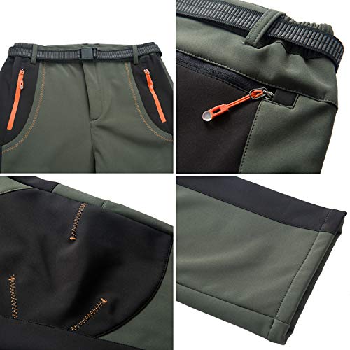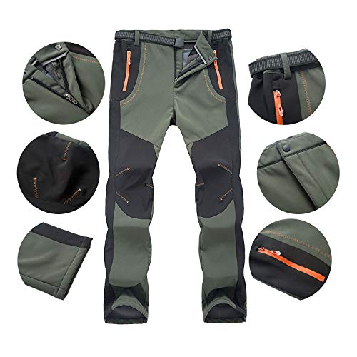 LY4U Pantaloni da Escursionismo Foderati in Pile Donna Inverno Caldo Pantaloni da Neve da Sci all'aperto, Verde EU L