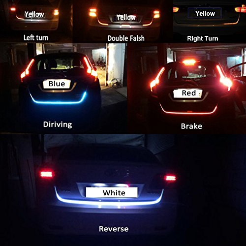 Lyauta, illuminazione LED del bagagliaio con segnalatore di movimento, frenata e indicatori di direzione, 120 cm, CC 12 V, luce blu e rossa