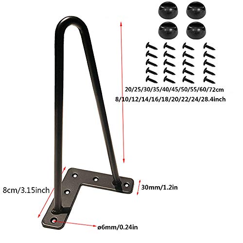 LYBC Gambe Tavolo A Forcina 4 Pezzi, 40cm 50cm Piedini per Mobili in Metallo Fai-da-Te per Tavolino E Panca da Armadietti,Sostitutive Piedini,Nero