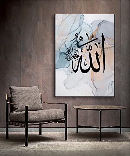 LYBOHO Quadro su tela per calligrafia araba islamica, sfondo in marmo argentato, citazioni islamiche, poster su tela, senza cornice (Islam - blu, 3PCS-50 x 70 cm)