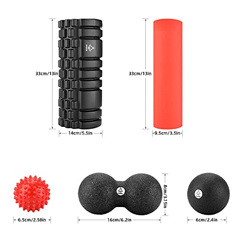 LYCAON Rulli di Gomma Piuma Foam Roller Set E-Book per Recupero Muscolare dei Tessuti Profondi/Rilascio miofasciale/Pilates/Yoga/Crossfit/Fitness (Rosso (aggiornamento))