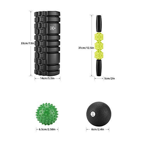 LYCAON Rulli di Gomma Piuma Foam Roller Set 5Pcs per Recupero Muscolare dei Tessuti Profondi/Rilascio miofasciale/Pilates/Yoga/Crossfit/Fitness