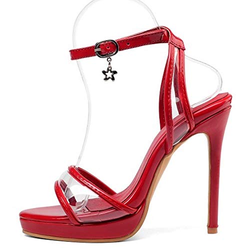 Lydee Donne Moda Open Toe sandali Tacchi a Spillo Cinturino Festa Scarpe estive Piattaforma Red Taglia 46