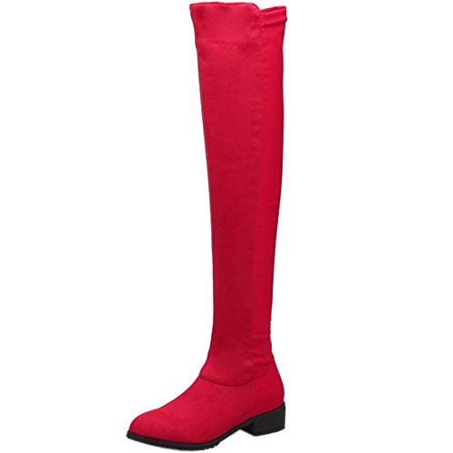 Lydee Donne Moda Scarpe Invernali Tacchi Bassi Stivali sopra il Ginocchio Stivali Half Zipper Stivali Lunghi Piatto Red Taglia 36