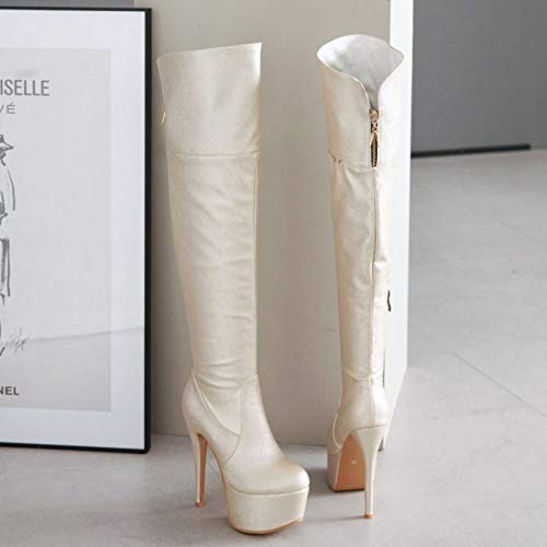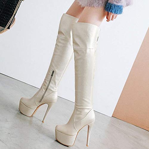 Lydee Donne Moda Thight High Stivali con Fiocco Cerniera Tacchi a Spillo Sera Festa Stivali Lunghi Piattaforma Gold Dimensione 46