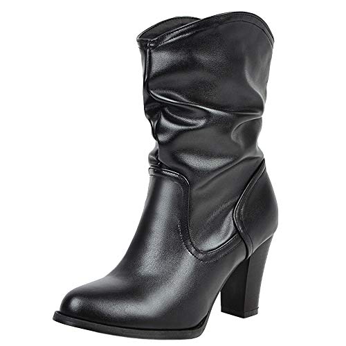 Lydee Donne Moda Western Booties Pull on Tacco Alto Slouch stivali Caviglia Festa Heels Black Dimensione 42