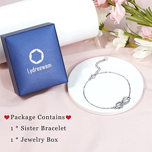 Lydreewam Bracciale Sorella Donna Argento 925 Bracciale Infinito per Sorelle Migliore Amico Amicizia Regalo di Compleanno Laurea, Regolabile 16+3 cm