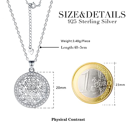 Lydreewam Collana Fiore della Vita Donna Argento 925 con Confezione Regalo per Mamma Moglie Fidanzata, Regolabile 40+5cm
