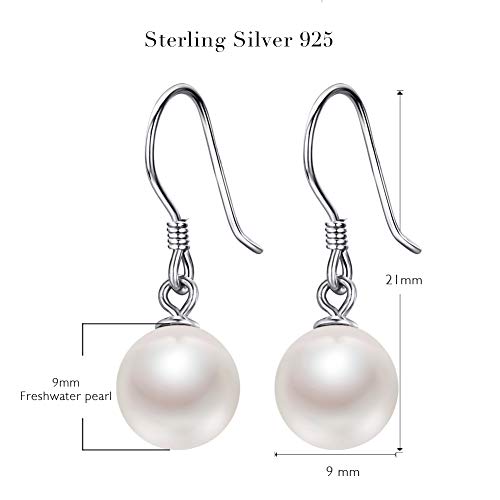 Lydreewam Pearl Dangle Drop orecchini da donna argento Sterling 925 con perle d' acqua dolce naturale 8 mm