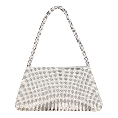 LYEAA Borsa da sera con strass per donna Bling Diamond Crystal Dinner Party Borse, Argento