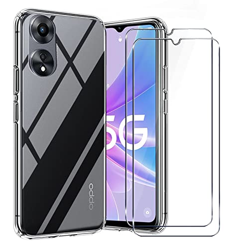 LYJERRY Custodia Per OPPO A78 5G Caso + 2Pcs Pellicola Vetro Temperato Per OPPO A78 5GProtettiva Leggero Protector Morbido TPU Cover Silicone di gomma Phone Case 9H Vetro Protettiva