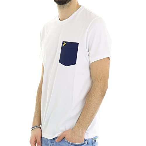 Lyle & Scott Uomo T-Shirt con Tasca A Contrasto Bianco/Blu Navy M