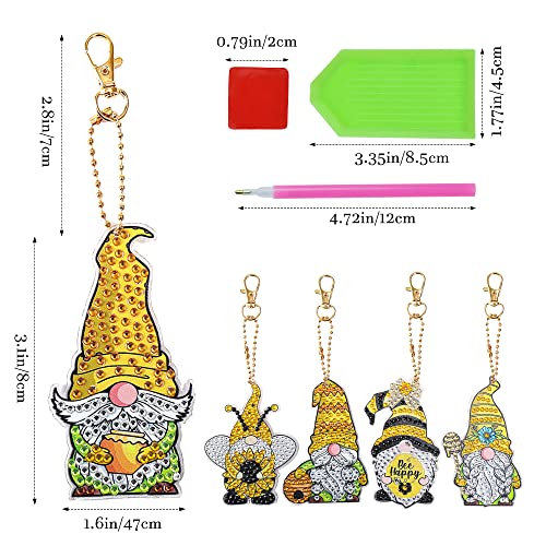 LYLIDIA 5pcs DIY Diamante Pittura Porte Chiavi Ape Doppio Lato Diamante Pittura Kit 5D Mosaico Forma Portachiavi Ciondolo +5 Piastre Acrilico +1 Penna a Punti Decorazione Borsa Telefono Auto