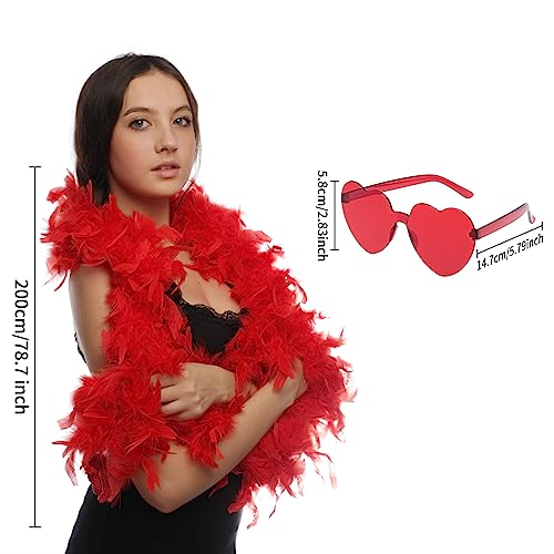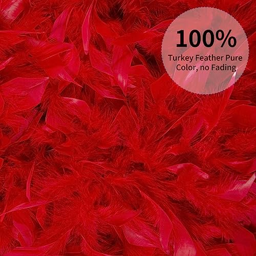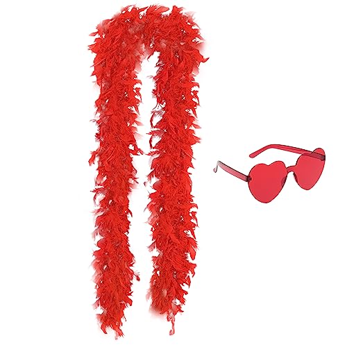 Lyneun Boa di piume colorate, 2 m di piume e bicchieri a forma di cuore, 80 g di piume morbide Bower, 2 m accessori per travestimenti per balli, matrimoni, Natale, Halloween Carnevale (Rosso)