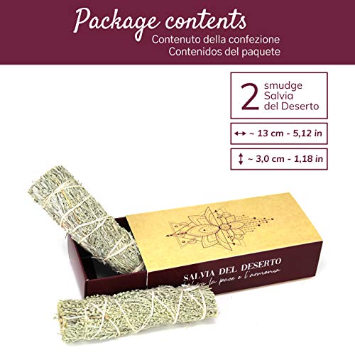 Lynpha Vitale - Smudge Salvia del Deserto - Incenso 100% Naturale da Bruciare - Ideale per Purificazioni, Rituali e Cerimonie - 2 pz cm 12x3