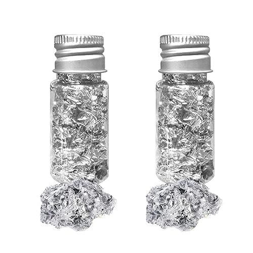 LYQNIHOB Set da 2 Bottiglie Fogli di Oro Argento per Doratura, Artigianato, Mobili, Decorazioni, Pittura, Tappezzeria e Unghie - Ideali per Progetti Artistici e Fai da Te,