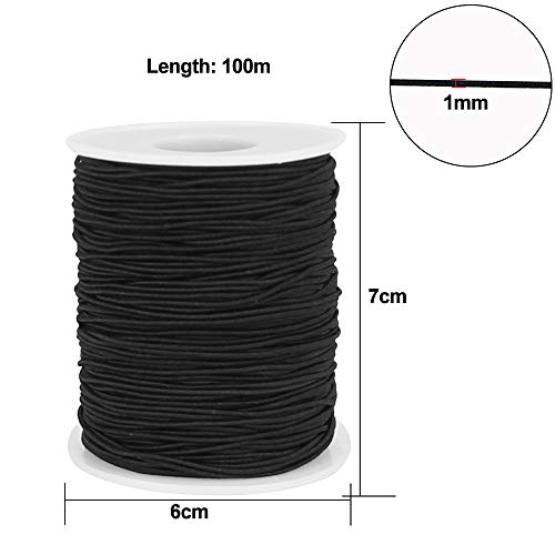LYTIVAGEN Corda Elastica in Polipropilene Corda Stretch Bobina di Filo Elastico per Perline, DIY, Crafting(1mm*100m, Nero)