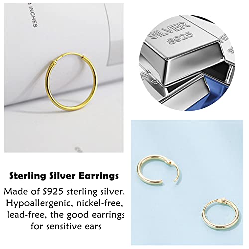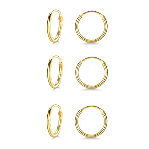 LYTOPTOP 3 paia di orecchini a cerchio in argento Sterling S925 piccoli orecchini ipoallergenici per cartilagine naso labbra anelli per uomini ragazze, 8/10/12/14 mm
