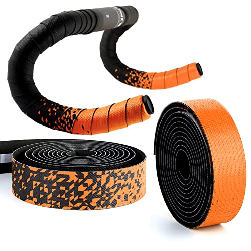 Lywencom Nastro per manubrio da bicicletta, confortevole antiscivolo e smorzante, traspirante, delicato tocco sfumato, in schiuma EVA, autoadesivo, con 2 tappi per barre(arancia)