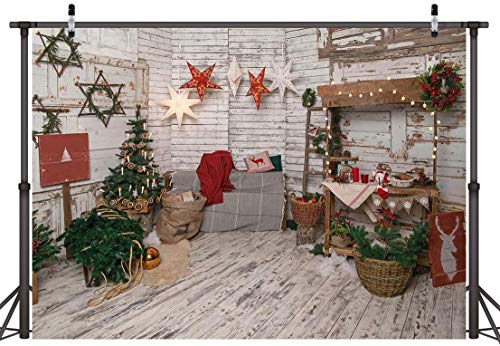 LYWYGG 7x5FT Sfondo di Natale Sfondo di Tavola di Legno Bianco Retro Decorazione Della Casa Fotografia di Famiglia di Natale Sfondo Sfondo di Foto di Bambini di Natale CP-293