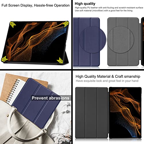 LYZXMY Custodia + Vetro Temperato per Samsung Galaxy Tab S8 Ultra 14.6" - Supporto Protettiva Tablet Cover in Pelle Flip PU Case - Darkblue