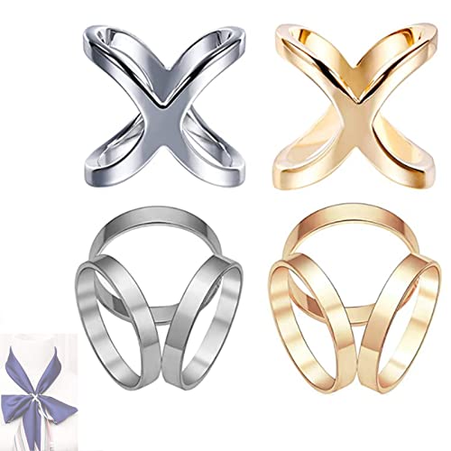 Lzhixin 4 Pezzi Fibbia della Sciarpa, Seta con Fibbia ad Anello, con Triplo Scivolo, Abbigliamento Quotidiano, Matrimoni, Balli, Feste, Uffici (Oro+Argento)